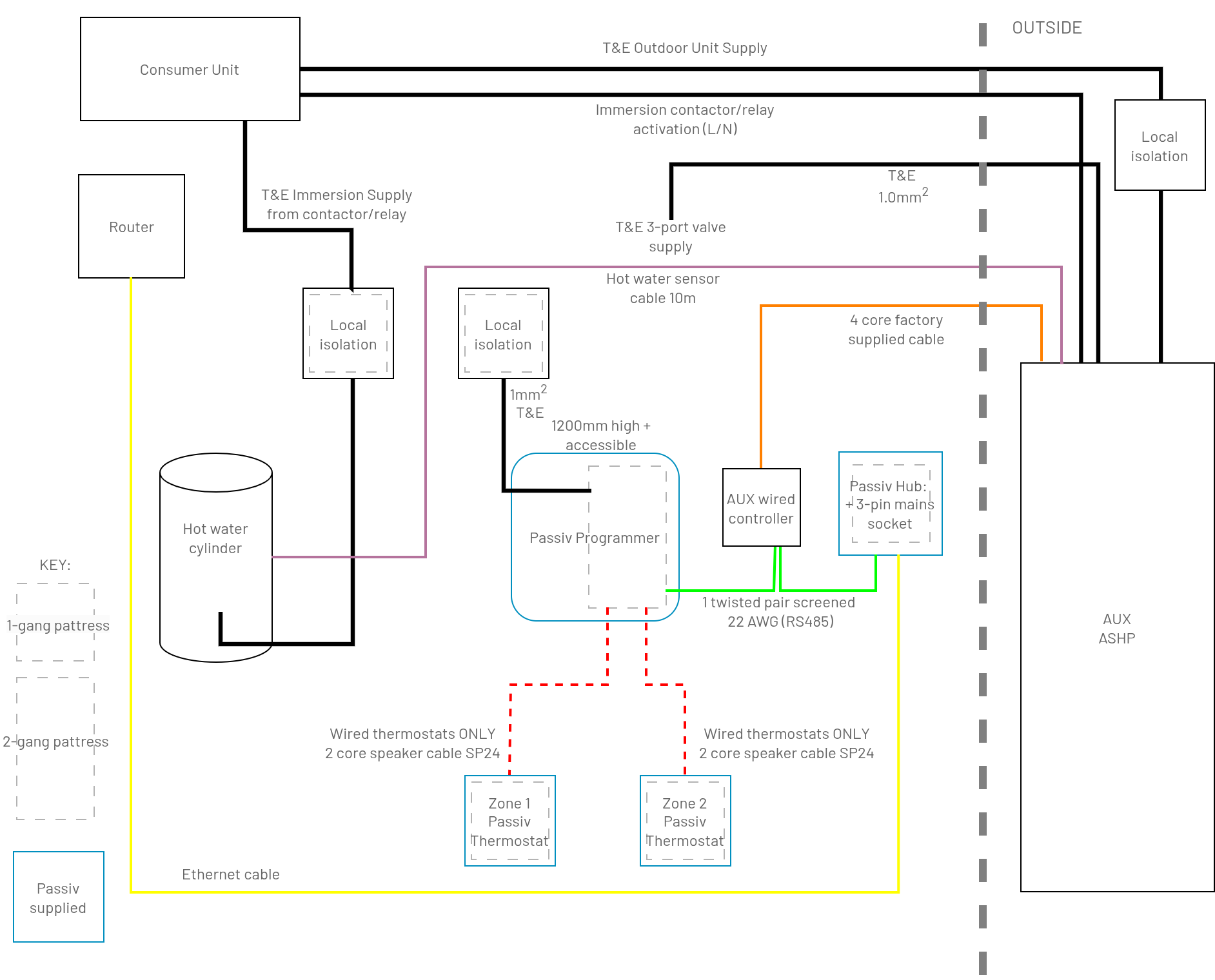Note: If your installation includes a buffer tank, two heating zones or a secondary circulation pump, consider the cable runs back to the Passiv Programmer's wiring-centre, where these connections can easily be accommodated.