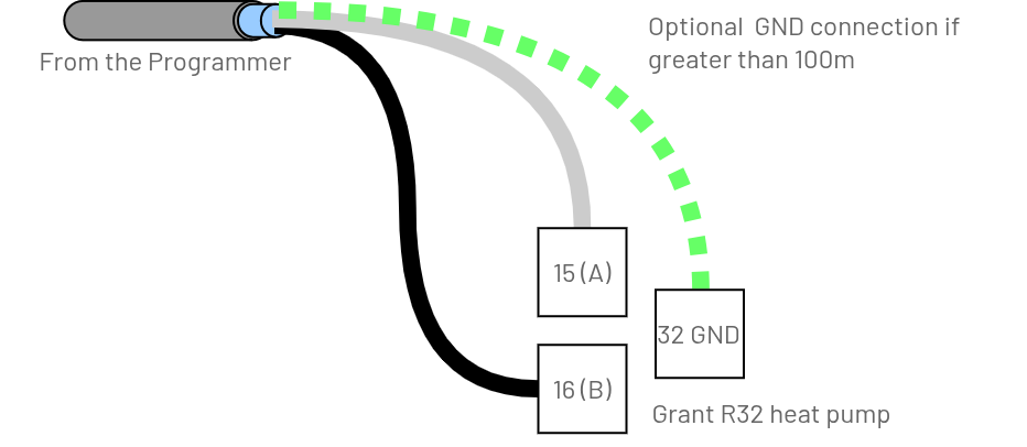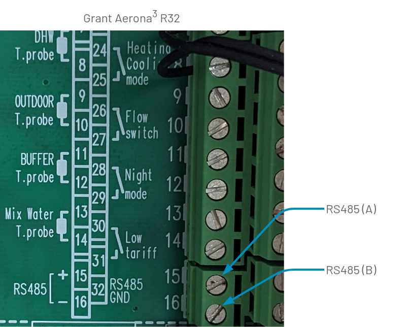 The Grant R32 heat pump has factory fitted RS485 communication capability.