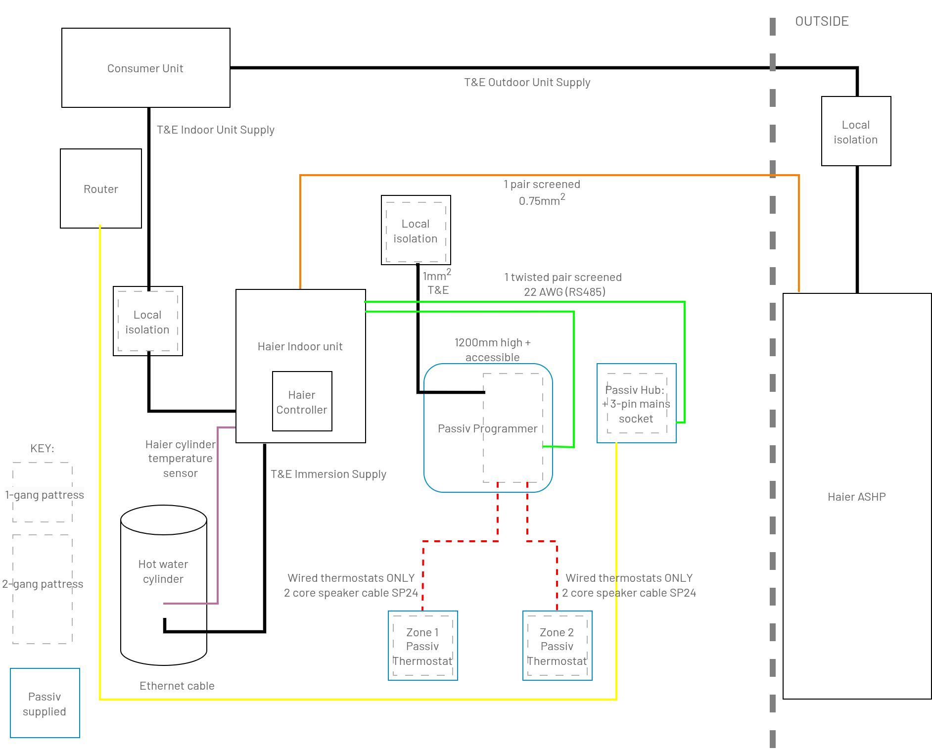 Note: If your installation includes a buffer tank, two heating zones or a secondary circulation pump, consider the cable runs back to the Passiv Programmer's wiring-centre where these connections can be easily be accommodated.