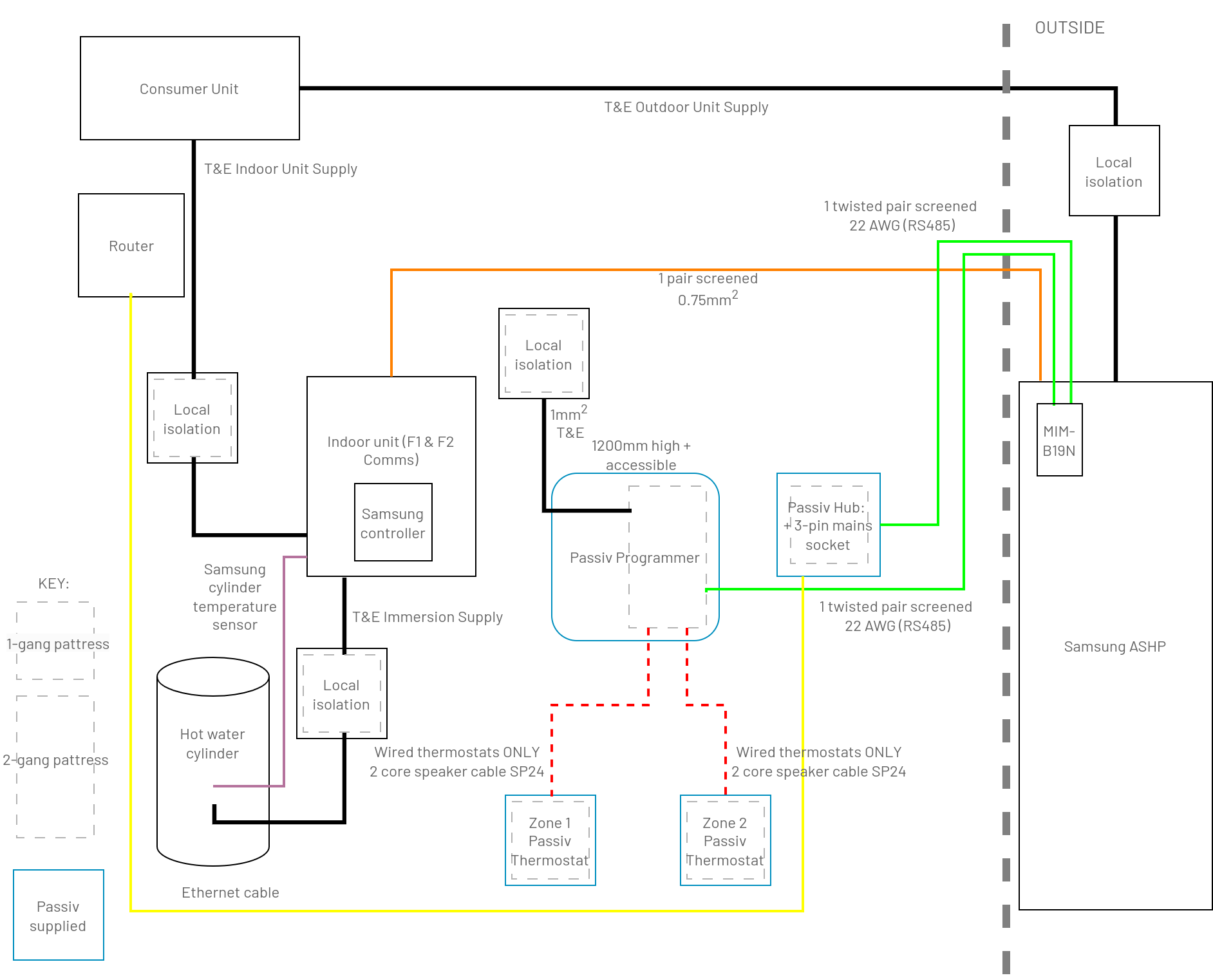 Note: If your installation includes a buffer tank, two heating zones or a secondary circulation pump, consider the cable runs back to the Passiv Programmer's wiring centre, where these connections can be easily be accommodated.