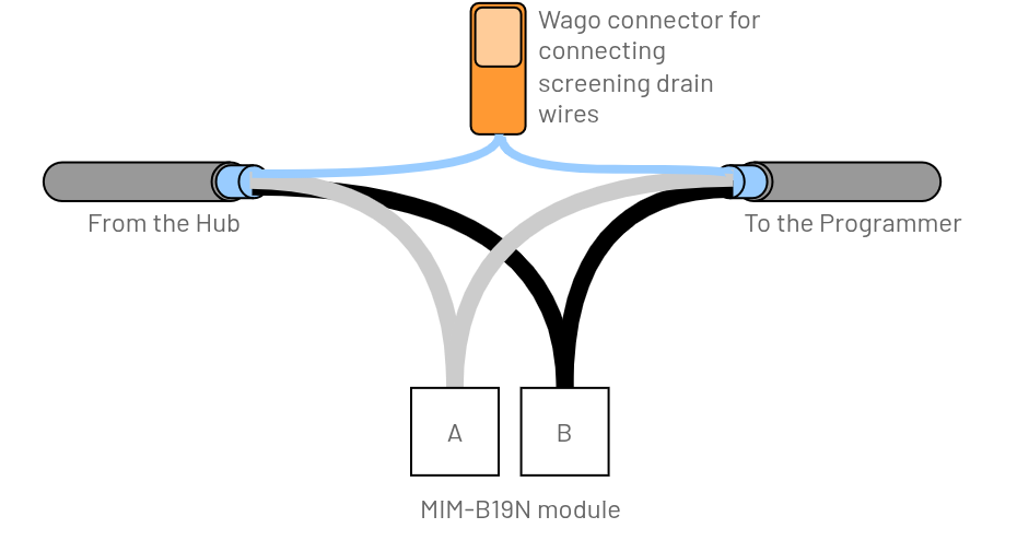 MIM-B19N in the middle of the RS485 cable runMIM-B19N at the end of the RS485 cable run